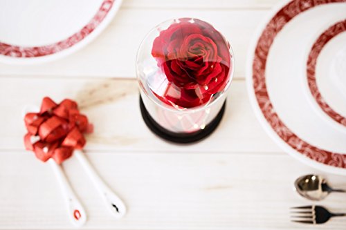 Homeseasons rosa rossa artificiale, in seta, ispirata alla rosa incantata de “La bella e la bestia”, con luci incorporate, in cupola di vetro