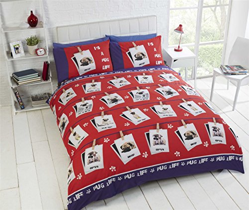 Homespace Direct Pug Dog Doppio Trapunta Copripiumino & 2 Federa Biancheria Letto Set novità Cute Animals by