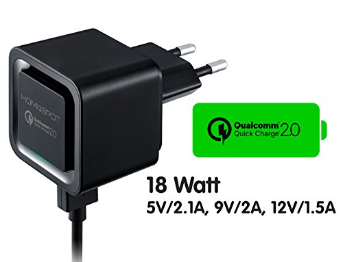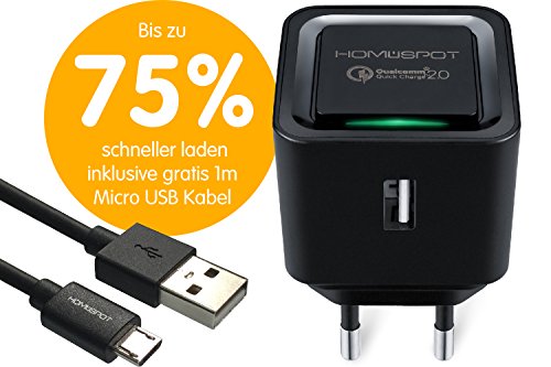 HomeSpot Caricatore USB da 18 Watt per smartphone compatibile con tecnologia Qualcomm Quick Charge 2.0 (nero con cavo micro USB da 1 metro)