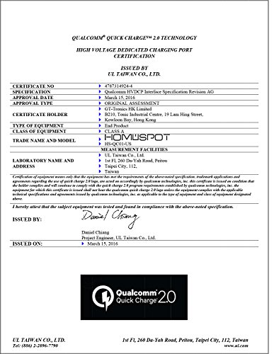 Sicurezza certificata: Qualcomm Quick Charge 2.0 certificato CE e ETL, testato secondo lo standard UL