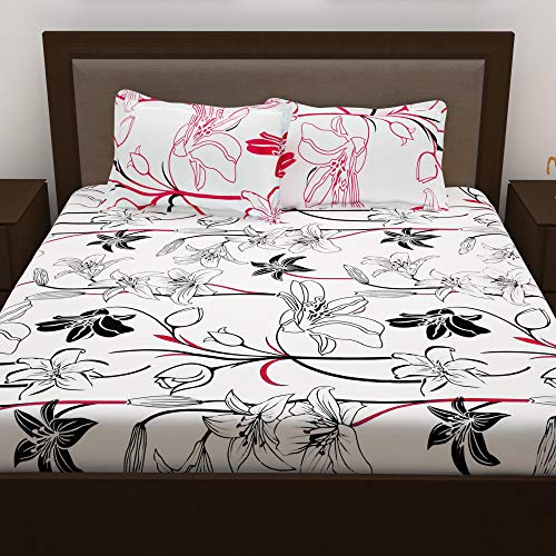 HOMESTORY Story @ Home 186 TC 100% Cotone Bianco 1 Lenzuolo Doppio con 2 Copertura del Cuscino Bianco Rosa