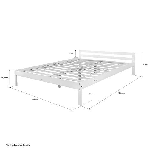 HOMESTYLE4U Stuoia di Pino massello Matrimoniale doghe Daybed, Legno, Bianco, 206 x 146 x 30 cm