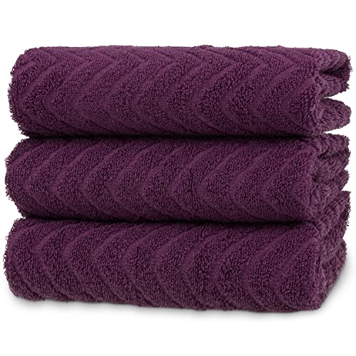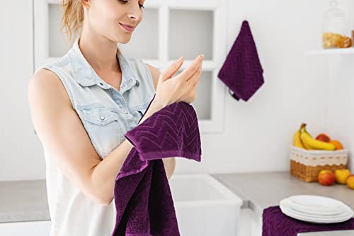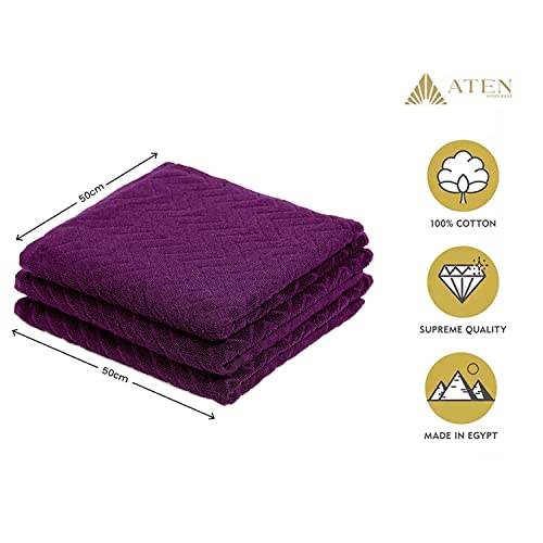 ATEN Homeware, Set di asciugamani in spugna di puro cotone, elegante confezione da 3 canovacci da cucina da 50 x 50 cm, 100% cotone egiziano filato ad anelli, super morbidi e assorbenti (viola)