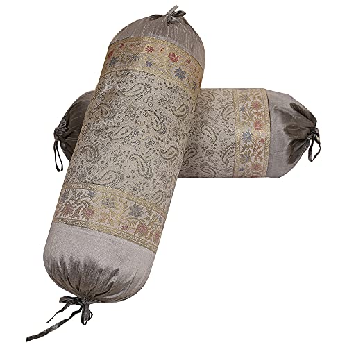 DK Homewares Broccato Indiano Polydupion Cilindro in Seta Lounge Decor Cuscini per Cuscini Fodera per Cuscino Paisley Grigia 76x38 cm Jacquard Weave Home Decor Fodere per Cuscini - (Set di 2)
