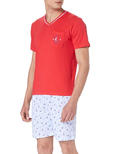 Dodo Homewear DH.voil.psh3 Set di Pigiama, Corallo/Bianco, XL Uomo