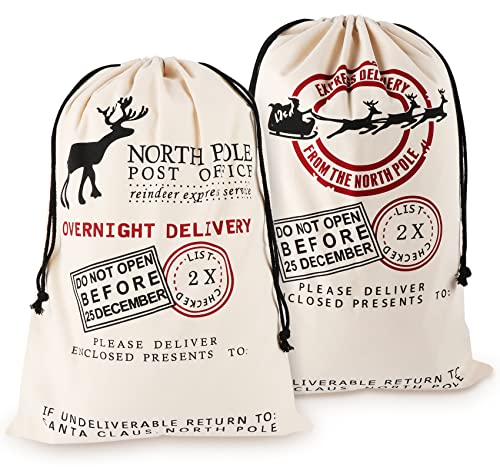 Homewit Sacco natalizio di Babbo Natale, 2 pezzi, in tela, color beige, con coulisse di cotone, sacchi per regali, formato XL, 70 x 50 cm, per tutti i regali