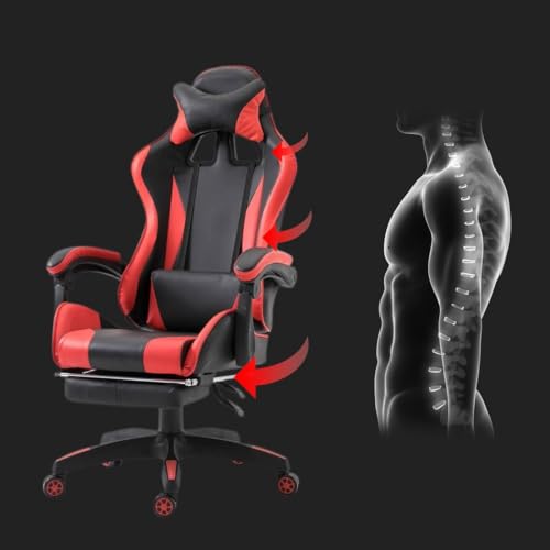 HOMEWORKSHOP CASALINGHI BRICOLAGE Sedia poltrona da gaming con led per ufficio videogiochi reclinabile imbottita ergonomica scrivania computer playstation RTX GTX (Rosso Nero)