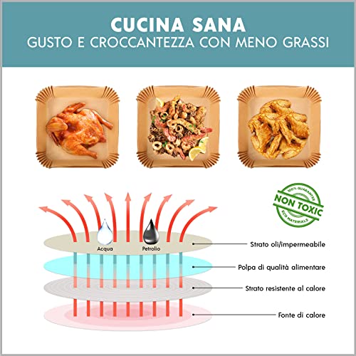✔️[KIT DI ALTA QUALITÀ]: Riceverai 2 confezioni da 100 Pezzi di carta forno quadrata monouso Antiaderente e Impermeabile dal diametro di 16 cm con bordi di 4,5cm. La carta forno per friggitrice So Homey è realizzata al 100% in pasta Alimentare ed è Atossica e Igienica. Garantiamo la massima qualità ad ogni preparazione culinaria utilizzando solo MATERIALI SICURI E CERTIFICATI