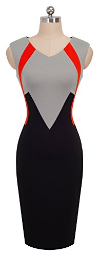HOMEYEE Donne Vestono Affari Epoca con Scollo a V Senza Maniche di Colore Patchwork Aderente Matita B445