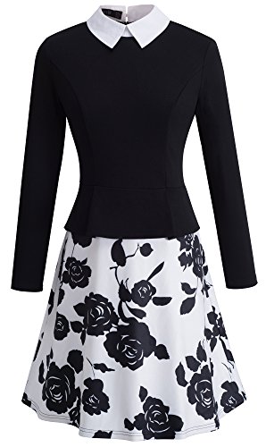 HOMEYEE Femminile Shirt Manica Lunga Epoca Patchwork Stampare Una Linea Abito A027