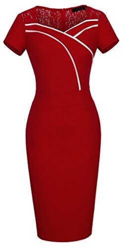 Homeyee tubino da donna con scollo a cuore con pizzo, per il lavoro, stile vintage B318