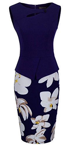 HOMEYEE - Vestito - Vita Impero - Senza Maniche - Donna B288 (36, Blu Scuro)