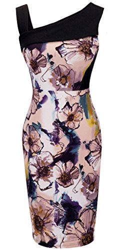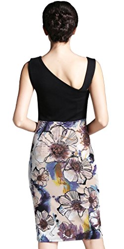 HOMEYEE - Vestito - Stretch Floreale Patchwork Asimmetrico Dress - Senza Maniche - Donna B285