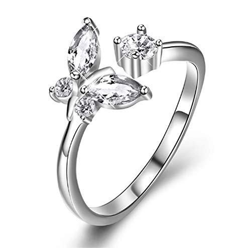 HOMEYU Anello a Forma di Farfalla Infinity con Anello Aperto Regolabile in Argento Sterling con Cristalli Swarovski Bianchi per Donna, Ragazza