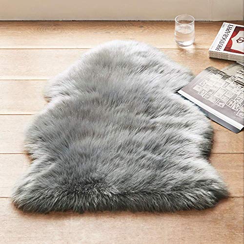 HomeZone Tinta Unita Soffice Morbido Camera da Letto Finta Pelliccia Finto Singolo Tappeti di Pelle di Pecora Lavabile Eco-Compatibile Colorato Tappeti - Argento