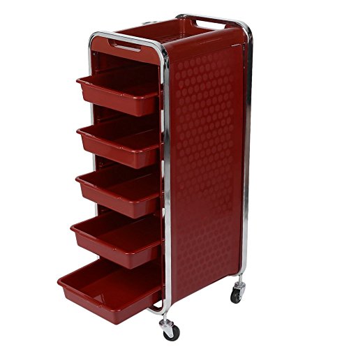 Homgrace Carrello Portaoggetti per Parrucchiere a 6 Ripiani con Porta Phon, Carrello Professionale per Belleza Estetista Massaggi Manicure Spa (Rosso)