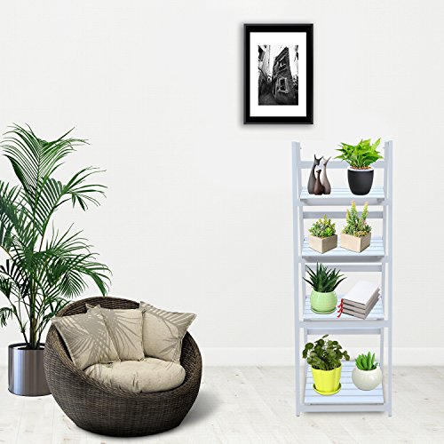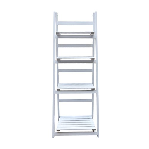 Homgrace Scaffale Porta Fiori Pieghevole a 4 Ripiani, Mensola Scala in Legno per Display Fiori Cornici Ornamenti, Scaffale per Fiore per Balcone Giardino Cortile, Bianco