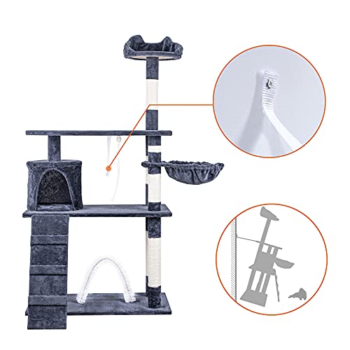 【Progettato per la natura dei felini】 La torre per gatti è dotata di tiragraffi avvolti in sisal. Questa trama è spesso attraente per i gatti e li incoraggia a graffiare, arrampicarsi e allungarsi, il che consente loro di contrassegnare il loro territorio e di consumare artigli affilati. Questo offre una superficie graffiante per i tuoi gatti, così possono concentrarsi sul loro tiragraffi, non sul tuo divano
