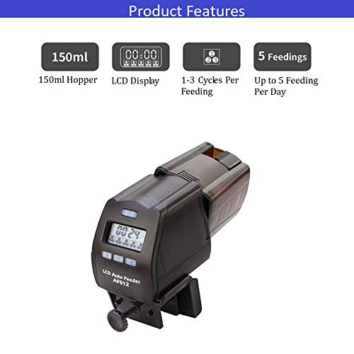 Homieco Alimentatore Automatico Acquario, Feeder Dispenser di Pesce con Display LCD, Erogatore di Cibo Automatico Programmabile per Pesci, Alimentatori Automatici per il Fine Settimana o le Vacanze