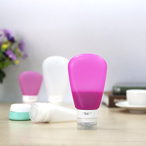 Homitex Kit Viaggio Bottiglia Da Viaggio In Silicone 89ML Contenitore Riutilizzabile Portatile Per Shampoo / Balsamo / Crema da Bagno / Lozione / Sapone (2 × 89ml, 1 × 60ml, 1 × 37ml)