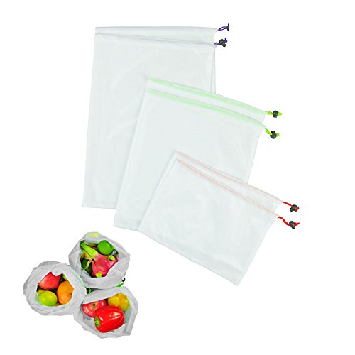 Homjoy, sacchetti riutilizzabili, ecologici, lavabili, in rete, per la spesa, frutta e verdura, frutta secca, giocattoli, cosmetici e accessori per la casa, Tessuto, White, S: 30 x 20 cm M: 30 x 35 cm L: 30 x 43 cm