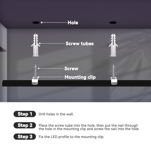 [ Accessori Completi ]- 10 x LED profilo alluminio, 10 x Coperture in plastica, 20 x Tappi di Chiusura, 30 x Clip di montaggio, 30 x Viti e viti ad espansione, 2 x nastro adesivo, 4 x Connettore Angolare, Cartone forato. (Nota: Strisce LED non incluse. Per ulteriori connettori ad angolo di 90 gradi, cercare su www.amazon.it/dp/B096RYK49Q)