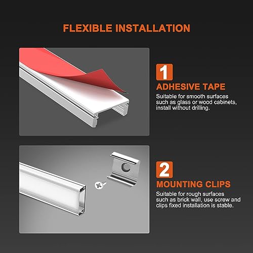 [ Facile da Installare ]- Due modi per installare il profili alluminio LED. Equipaggiato con nastro adesivo 6m e 30pz di clip di montaggio, basta selezionare il modo adatto e conveniente per installare HOMMAND profilo per strisce LED come tuo bisogno. Il cartone forato viene fornito per localizzare e perforare in modo semplice e veloce.