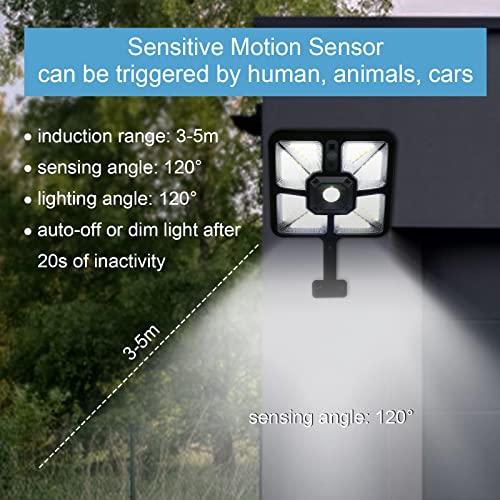 【Sensore di Movimento Intelligente Sensibile PIR】-- Con 220 COB LEDs e un angolo di rilevamento e illuminazione di 120°, la nostra lampada da parete solare può rilevare il movimento a una distanza fino a 3-5m. Quando il movimento viene rilevato la sera, la lampada da parete solare si aprirà automaticamente.