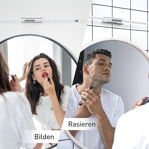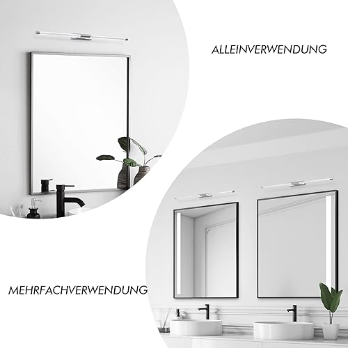 【Barra LED da 60 cm】 Questa lampada da specchio bagno per sovrastruttura è realizzata in ABS di alta qualità. Il suo design semplice e innovativo si inserisce perfettamente nel design semplice di ogni spazio abitativo. Durata della vita lunga 50000 ore, resistente e brillante in ogni.