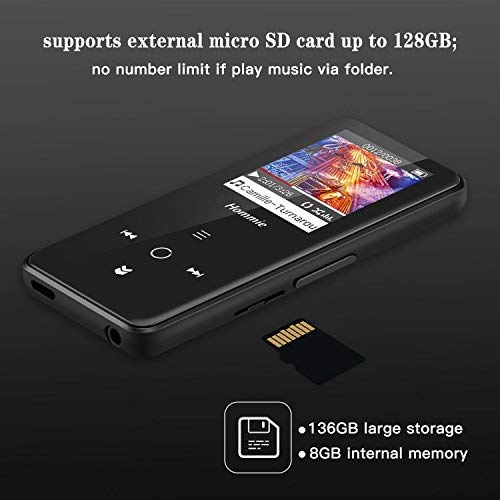 Hommie Lettore MP3 Bluetooth 4.0, J3 8 GB Lettore Musicale in Metallo con Radio FM e Registratore Vocale, Schermo TFT da 1,8 Pollici, Supporto Massimo da 128 GB di Scheda SD, Nero
