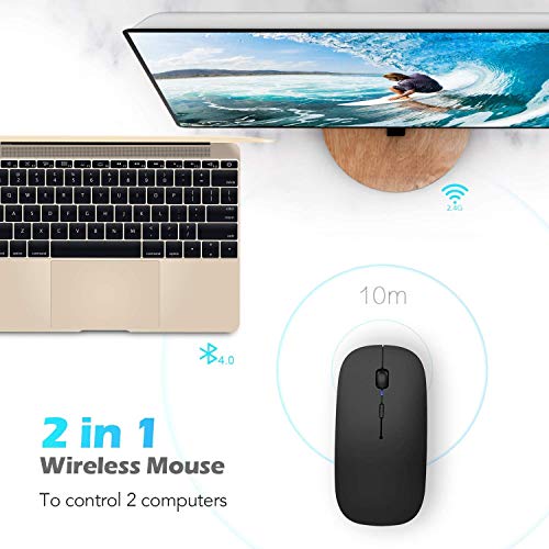 Hommie Mouse Bluetooth wireless ricaricabile mouse Super Silent Supporto Dual Mode 4.0/2.4G per Mac Laptop Windows PC, con ricevitore Nano USB, 5 DPI regolabili 2400/2000/1600/1200/800-nero