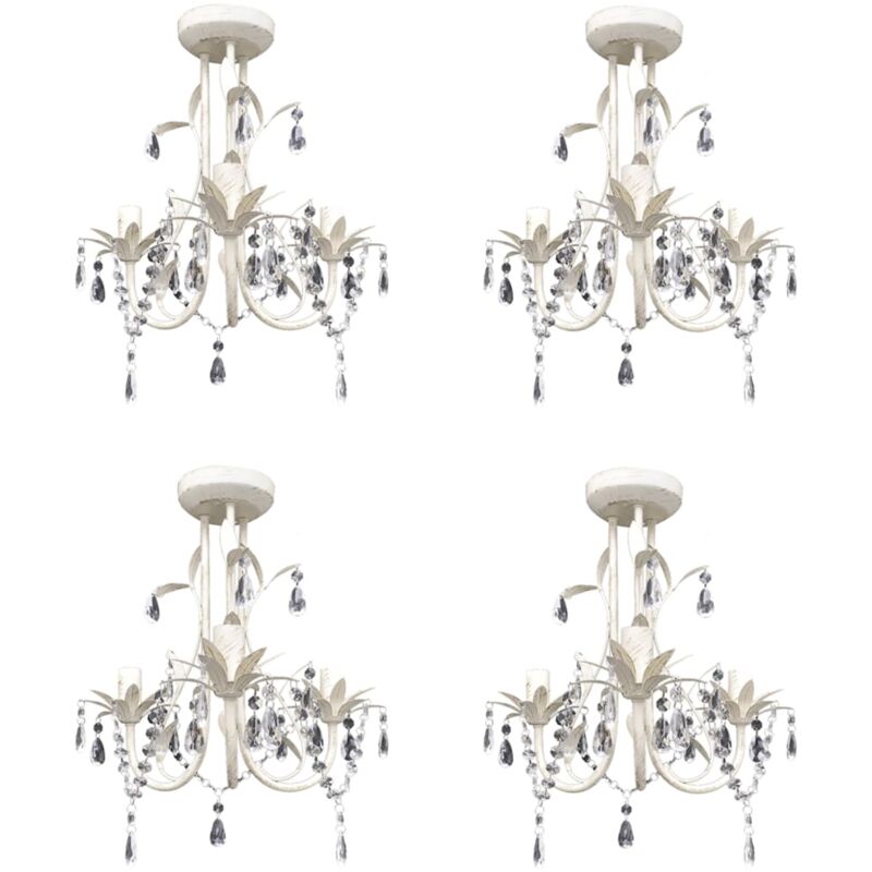 Descrizione: Questo splendido lampadario in cristallo, con un design classico ed elegante, che attira tutti gli sguardi in qualsiasi ambiente è l'ideale per uso privato e industriale. Grazie al suo design di cristallo regale, questo splendido lampadario è perfetto per il vostro ingresso, sala da pranzo, soggiorno e altro ancora! I pendenti in cristallo di alta qualità, con splendente reale chiarezza, sicuramente catturano e riflettono la luce in modo efficace, mentre lo spettro vi offre un magnifico gioco di colori. Con questo elegante lampadario in cristallo, potrete decorare la vostra casa in modo esclusivo. PS: La lampadina non è in dotazione. La consegna comprende 4 lampadari. Specificazioni: Tensione: 230 V~ Numero di prese per lampadina: 3 Telaio in metallo resistente Materiale cristallo lucido: Acrilico Dimensioni della lampada: 30 x 35 cm (Diametro x A) Lampadine: 3 x E14, max. 40 W (non incluse) Colore: Bianco anticato La consegna include 4 lampade