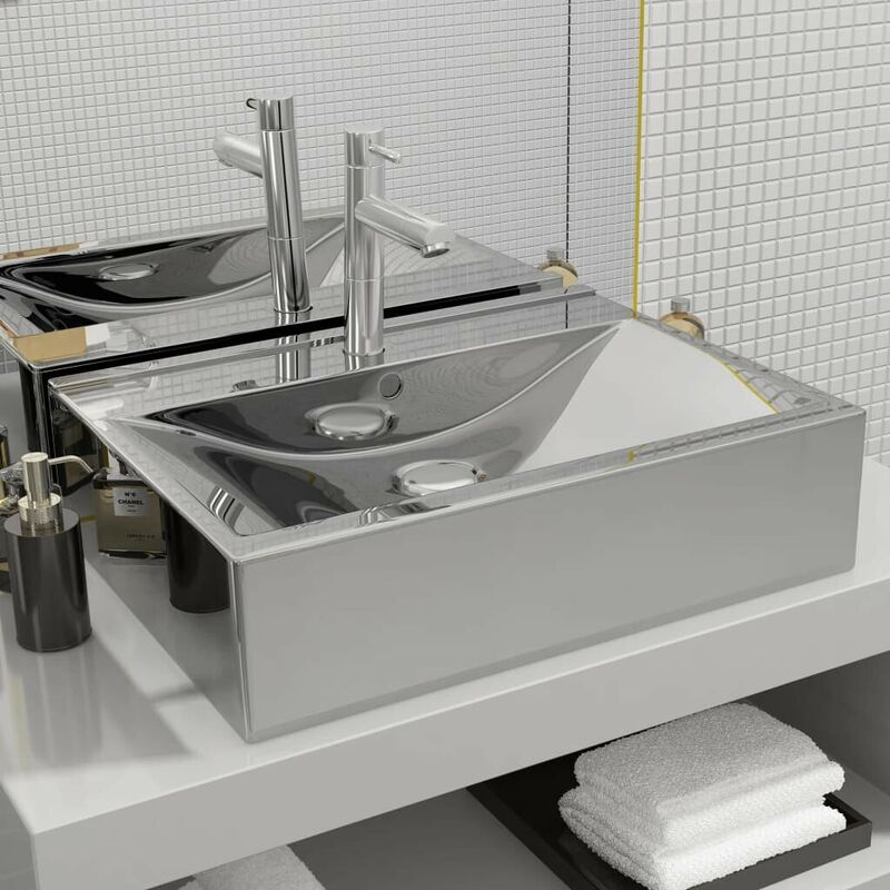 Descrizione: Realizzato in ceramica, questo lavabo rettangolare costituisce un'aggiunta elegante e senza tempo a qualsiasi stanza da bagno, toilette, guardaroba o lavatoio. Questo lavabo non solo è pratico nell'uso quotidiano, ma costituisce anche un elemento decorativo in qualsiasi ambiente. Grazie al suo design di tendenza e contemporaneo il lavabo si adatta alla perfezione a qualsiasi stile di arredamento. Realizzato in ceramica, il lavello è molto facile da pulire. La finitura lucida fornisce al prodotto un ulteriore tocco di stile. Il troppopieno incluso evita che l'acqua fuoriesca dal lavandino se diventa troppo pieno. Il lavabo è dotato anche di un foro per l'installazione del rubinetto. Si prega di notare che il rubinetto e lo scarico non sono inclusi nella fornitura. Specificazioni: Colore: Argento Materiale: Ceramica Dimensioni complessive: 600 x 460 x 160 mm (L x P x A) Diametro del foro di scarico: 4,5 cm Foro per il rubinetto: 3,5 cm Tipo di installazione: Da appoggio o a
