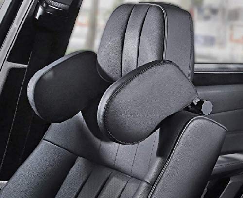 HommyFine Cuscino Poggiatesta per Auto, Poggiatesta collo auto protezione collo in Pelle PU con Memory Foam con Barra Scorrevole Regolabile per Seggiolino Bambini Adulti (Nero, Pelle PU)