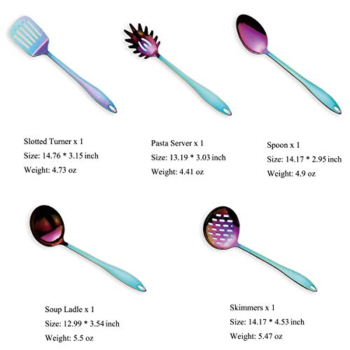 HOMQUEN Set di Utensili da Cucina colorato in Acciaio Inox-5 Utensili da Cucina, Set di Utensili antiaderanti da Cucina Color Arcobaleno