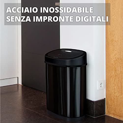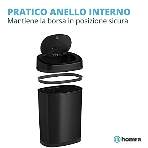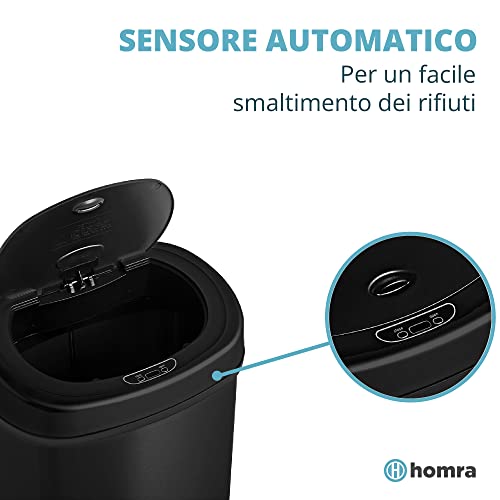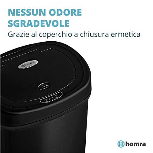 Homra Pattumiera Automatica 40 litri Fonix | Bidone intelligente con Sensore | Cestino Automatico Spazzatura Cucina | Design Smart Trash Can | Contenitore Immondizia interno | Acciao Inox | Nero