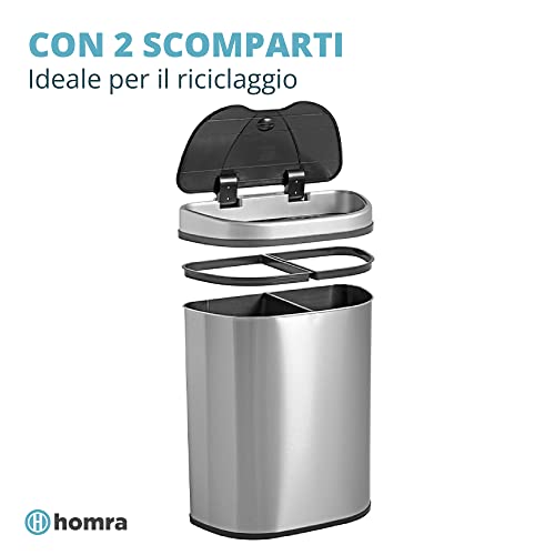 Homra - Sistema per la raccolta differenziata dei rifiuti, Pattumiera di lusso con sensore, 70 litri, in acciaio inox di alta qualità, bidone delle immondizie automatico con sensore di movimento