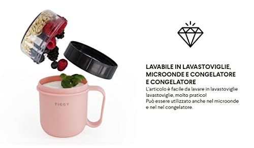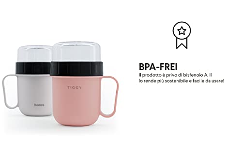 Homra TIGGY tazza da yogurt da portare via - Rosa - 750 ml - Tazza da cereali to-go - Scatola da pranzo - Senza BPA - Adatto a microonde, congelatore e lavastoviglie