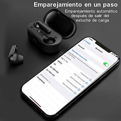 [TWS Bluetooth 5.0] - Progettati con il più recente Bluetooth 5.0, gli auricolari wireless Bluetooth si collegheranno in modo rapido e stabile senza aggrovigliarsi. Microfono di qualità migliorata per entrambi gli auricolari per una migliore qualità delle chiamate.