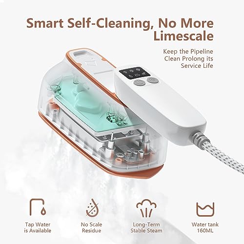 【Funzione di Auto-pulizia】Addio a fori vapore ostruiti e accumuli di minerali! Il nostro ferro da stiro da viaggio mini ha una funzione auto-pulizia che previene ostruzioni e garantisce prestazioni ottimali. Con un semplice tocco, il ferro da stiro da viaggio a vapore si pulisce da solo, rimuovendo gli accumuli minerali. Puoi usare l'acqua del rubinetto, godendo un vapore costante e una manutenzione senza problemi. Risparmia tempo e fatica, mantenendo il tuo ferro sempre in ottime condizioni.