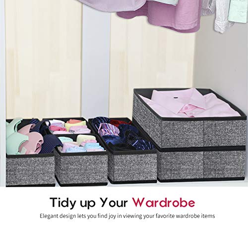 Homyfort Set di 6 Organizer Armadio, Ideali Come Organizer cassetti, Portabiancheria in Tessuto Traspirante, Nero Lino, XACB6P