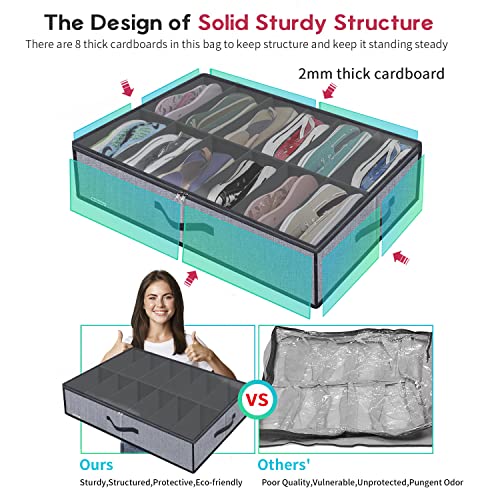 GRANDE CAPACITÀ DI STOCCAGGIO: Questo set di 2 scarpe sotto l'organizzatore del letto può contenere fino a 12 x 2 paia di scarpe con facilità. Pieghevole per risparmiare spazio quando non in uso. Grandi dimensioni: 74,5x60x15 cm (29,3x23,6x5,9 inch), Scarpa massima: 30cm (11.8inch)