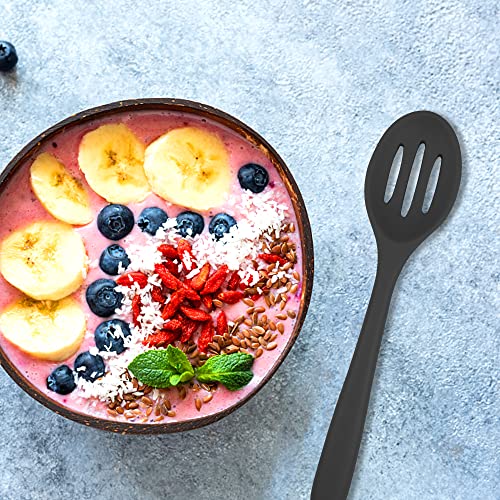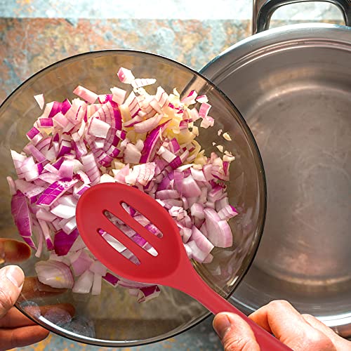 CUCCHIAI IN SILICONE:Nella confezione sono presenti 4 cucchiai per mescolare,inclusi 2 schiumarole e 2 cucchiai pieni. ca. 27,5 cm × 5,8 cm.Ci sono due colori, rosso e nero.