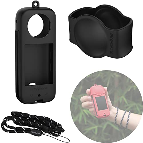 Honbobo X3 Custodia Protettiva, Custodia in Silicone Copriobiettivo Cordino Custodia AntiGraffio Copriobiettivo Copertura della Fotocamera Accessori per Insta360 X3 (Black)