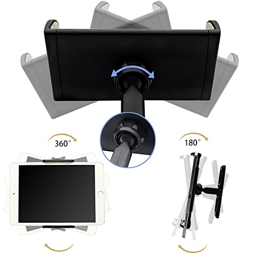 Il supporto per telefono/tablet è integrato con un morbido pad in EVA, che non graffia il telefono/tablet. Testa del supporto ruotabile a 360° e staffa avanti e indietro regolabile a 180°.