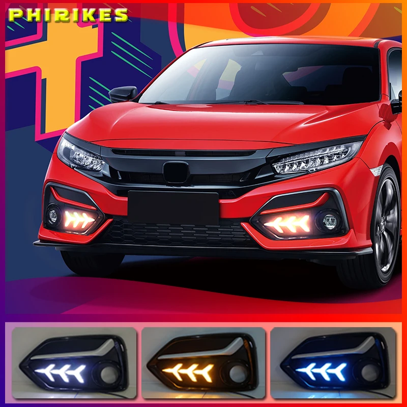 2PCS For Honda CIVIC hatchback 2020 2021 Daytime Running Light LED DRL fog lamp Driving lights Yellow Turn Signal Lamp