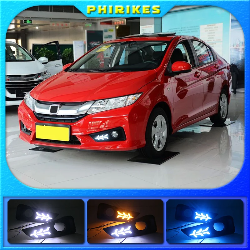 2PCS 12V DRL For Honda City 2015 2016 2017 With Yellow Color Turning Signal Lamp Day Light LED Daytime Running Light