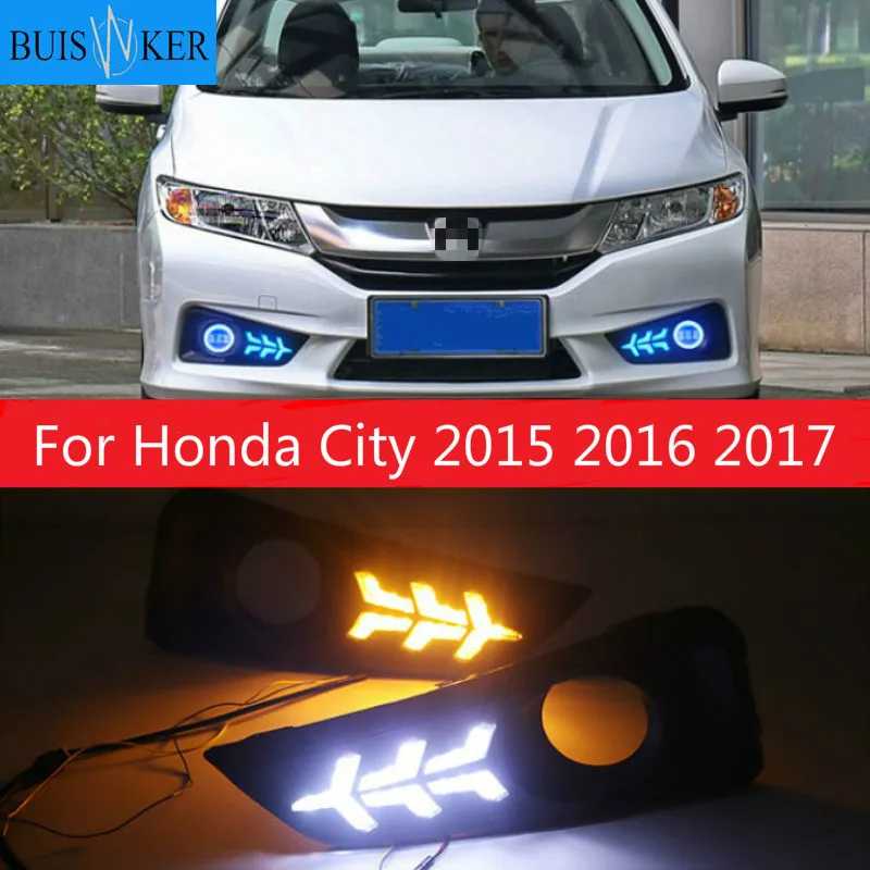 2PCS 12V DRL For Honda City 2015 2016 2017 With Yellow Color Turning Signal Lamp Day Light LED Daytime Running Light