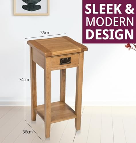 Hondood Monchique Oak - Comodino in legno di quercia con 1 cassetto, comodino/console/lampada/supporto per telefono con mensola, luce (AD31B)