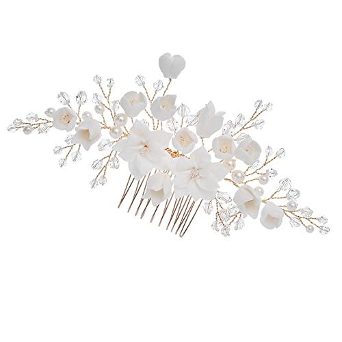 HONEY BEAR donna clip pettine per capelli,gioielli da sposa,accessori per capelli sposa,gioielli a forma di fiore con finte perle e strass (Fiore in ceramica C)